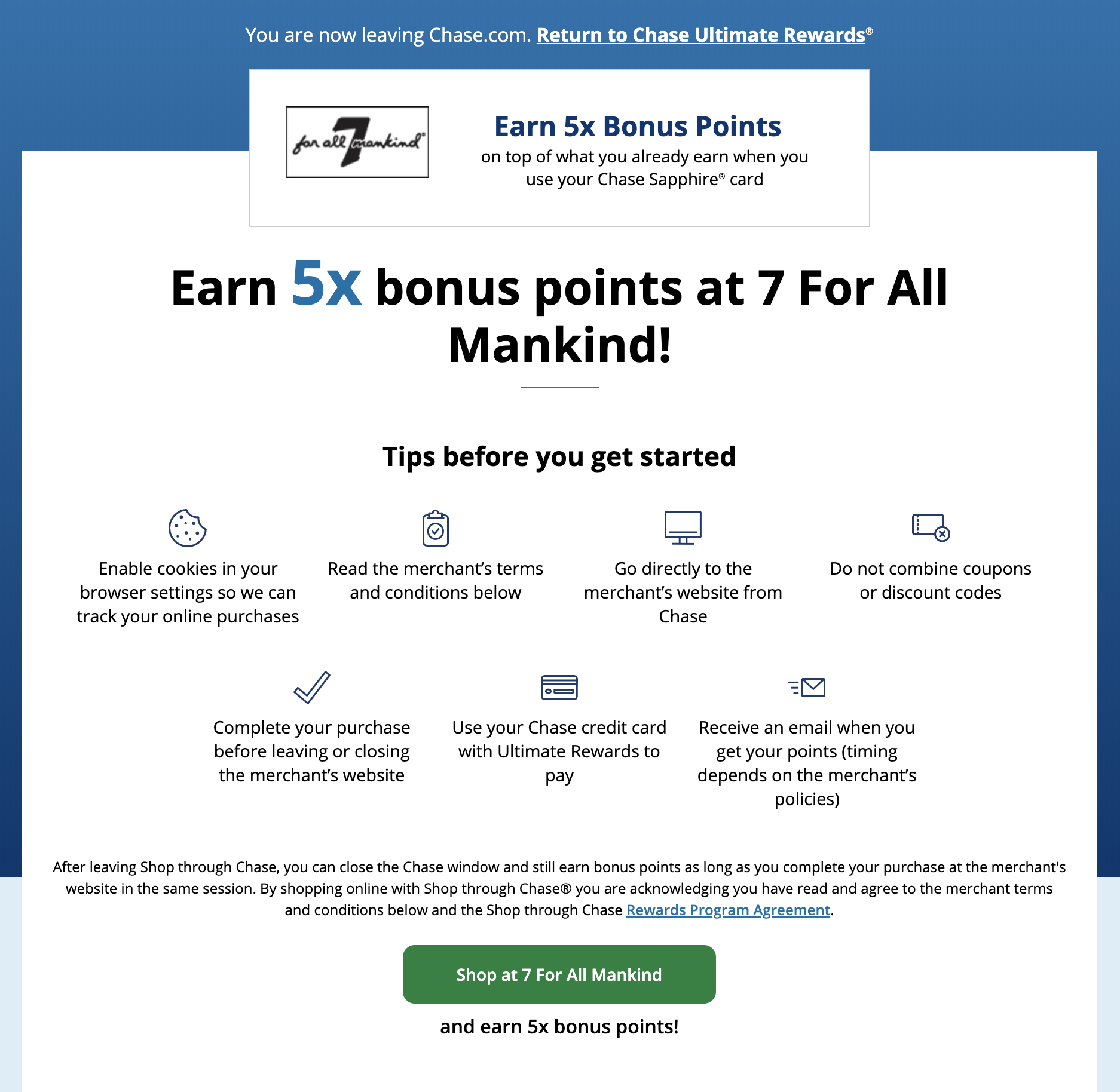 7 for All Mankind Jeans with the Chase Sapphire Preferred card, earning 5x UR points with Chase Offers!