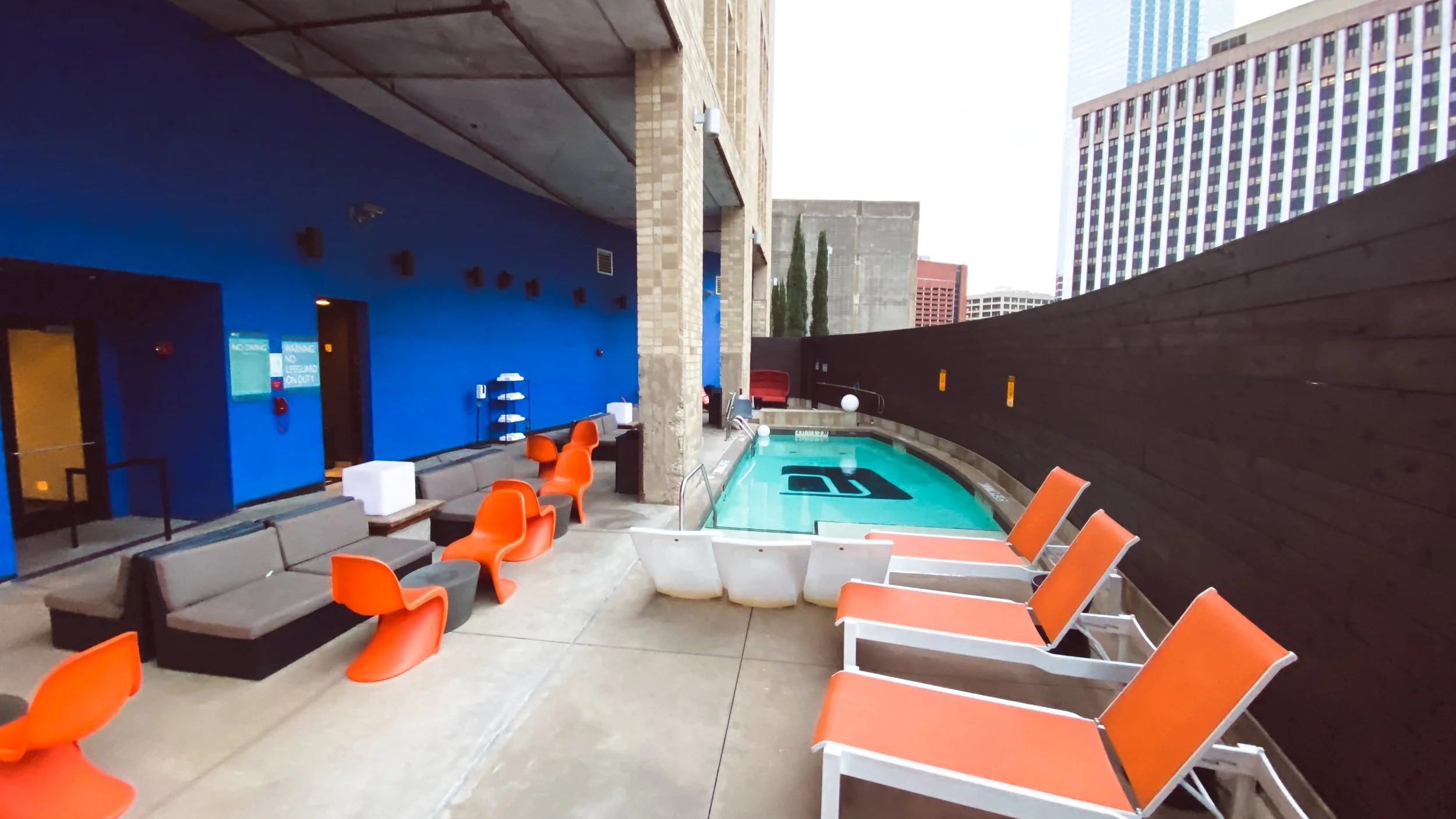 While the Aloft Downtown Dallas' pool is literally located adjacent to the parking lot, the clever design makes it feel private.