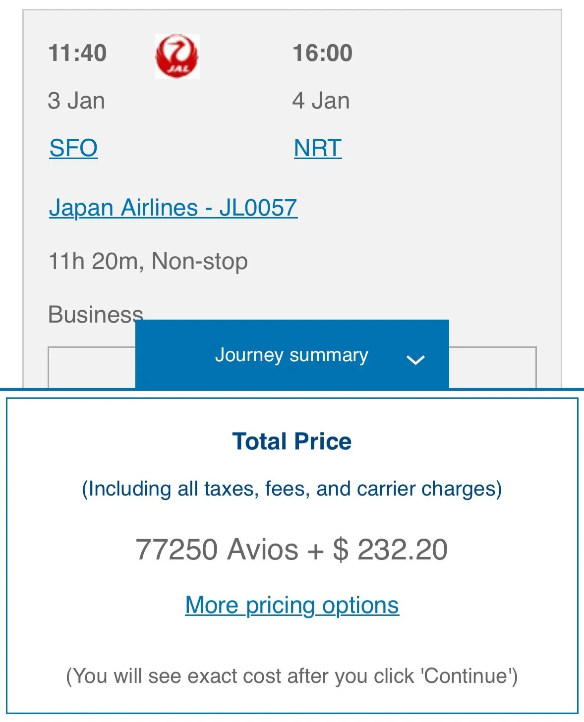 Booking through British Airways with Avios offers a great way to leverage the Amex transfer bonus, making your points go further. While American Airlines and Alaska Airlines also offer excellent redemption rates, British Airways’ transfer bonus can be a game-changer, especially when booking premium cabin flights like business class on Japan Airlines.